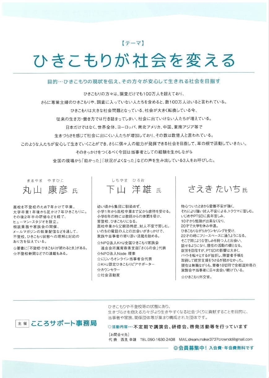 〜ひきこもりの現状を伝え、その方々が安心して生きられる社会を目指す〜